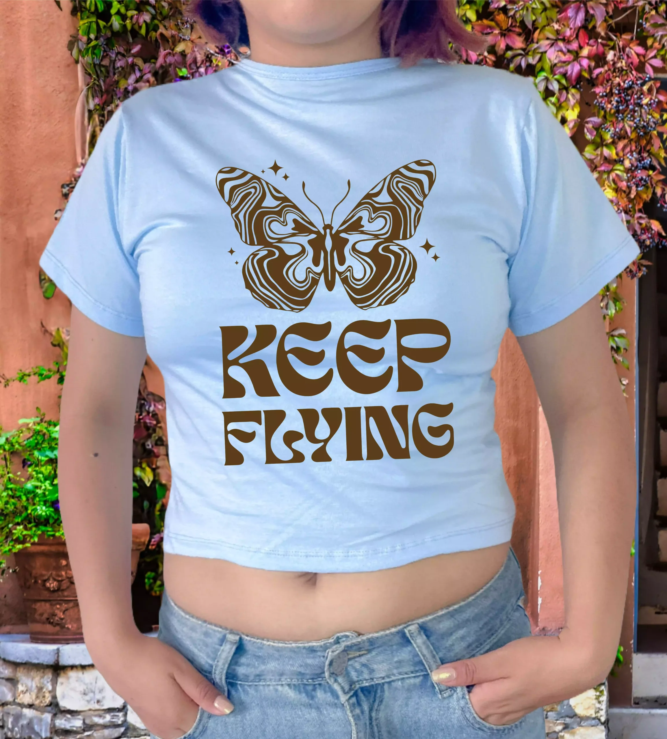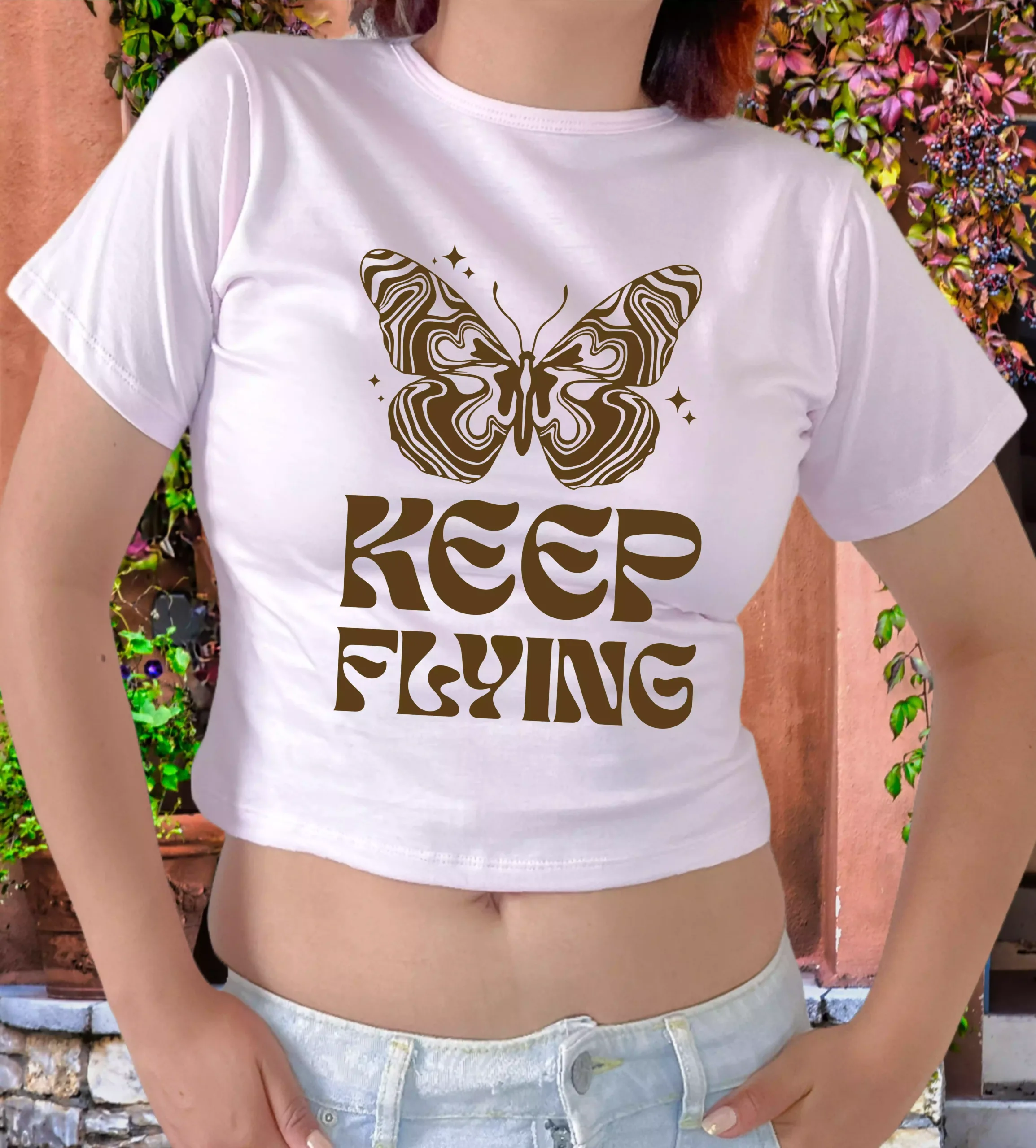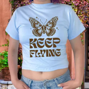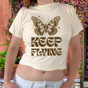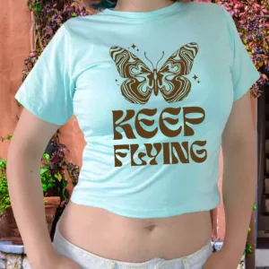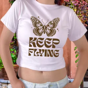 Polo Baby Tees para mujer 100% algodón Jersey 30/1, mangas cortas, con estampado en el delantero.